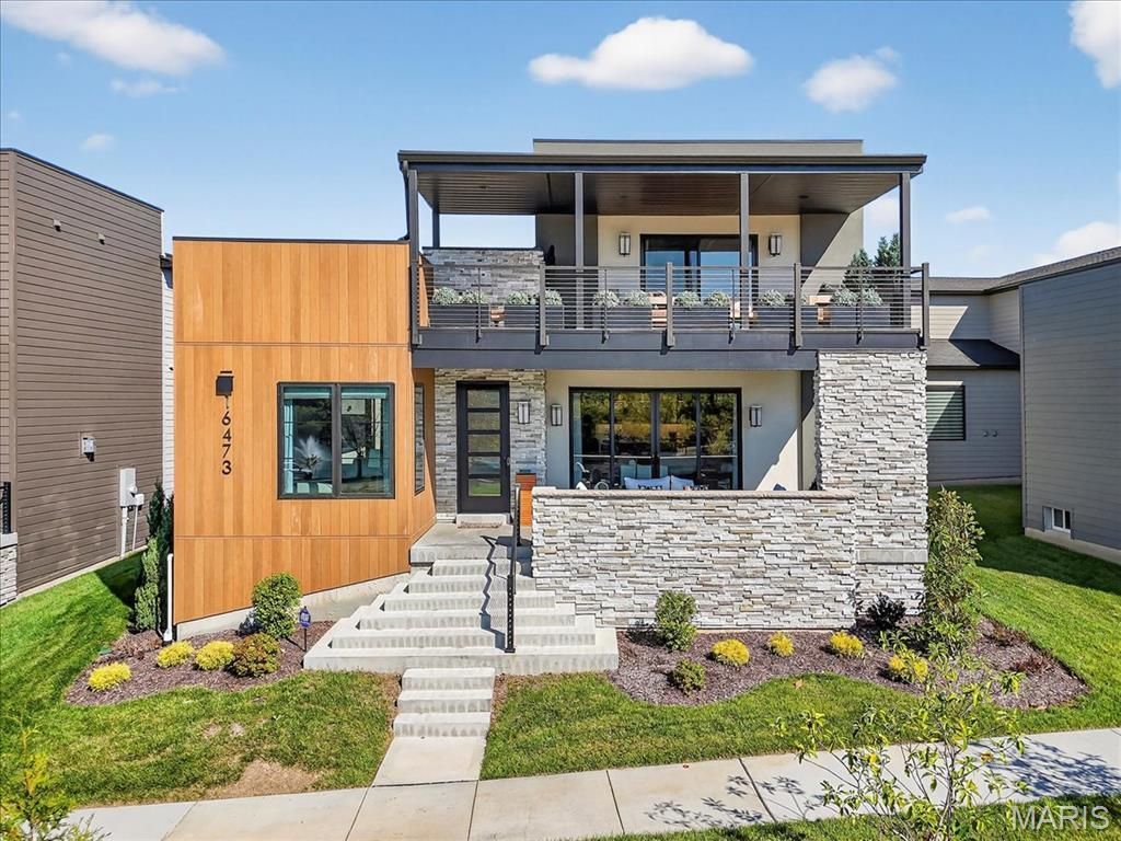Situated in the sought-after Waterfront at Wild Horse within the Rockwood School District (Marquette High School), this custom-designed residence showcases a level of finish rarely seen in the area. Curated materials define every space-from the quartz waterfall island and custom cabinetry to the specially sourced architectural lighting that elevates each room with gallery-like precision.Expansive windows capture lake views from nearly every vantage point, creating a continuous connection to the outdoors. Thoughtfully executed upgrades include integrated whole-home audio across all three levels, enhanced security features, professionally designed custom closets and pantry, and tailored window treatments that complement the home's modern, boutique aesthetic.A privately designed courtyard with a built-in fireplace serves as an intimate outdoor extension of the interior, positioned to frame the water and offer year-round enjoyment. The property provides the sophistication of luxury new construction-without the delays or uncertainty of building-while benefiting from a prime Chesterfield location moments from the expanding Downtown Chesterfield redevelopment.In case you missed it the first time, 16473 Burkhardt Place is again available for buyers who appreciate elevated design, premium upgrades, and Smart home features. Here, in the vibrant heart of Chesterfield's newest and most exciting enclave, discover a residence that embodies timeless elegance, modern comfort, and the promise of an extraordinary lifestyle.