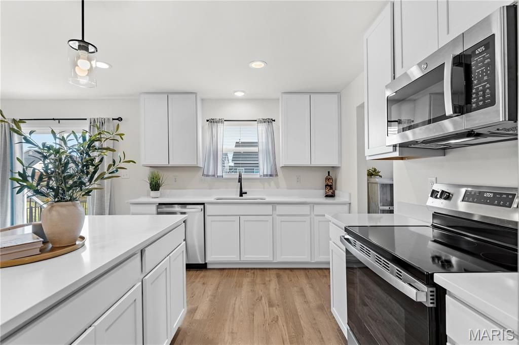 Built in 2024 and truly move-in ready, 414 Honor Hill Drive offers the benefits of new construction without the wait. Located in the Liberty subdivision in Foristell, this beautifully maintained two-story home combines modern finishes, functional living spaces, and everyday convenience. All required municipal inspections have been completed, and the occupancy permit has already been issued - providing added peace of mind and eliminating potential closing delays for the next owner.The bright, open layout is filled with natural light and thoughtfully designed for both comfortable daily living and effortless entertaining. The kitchen features elegant quartz countertops, stainless steel appliances, ample cabinetry, and a center island with bar seating, along with a separate dining area for more formal meals or gatherings.Luxury vinyl plank flooring and neutral paint throughout create a clean, cohesive look that complements any style of decor, while ceiling fans enhance comfort and energy efficiency. A convenient main-floor half bath adds functionality for guests.Upstairs, the spacious primary suite offers a private retreat complete with an en suite full bathroom and a walk-in closet. Two additional bedrooms provide flexibility for guests, a home office, or changing household needs, along with a second full bathroom. A second-floor laundry room adds everyday ease and efficiency.An unfinished basement provides excellent storage as well as the opportunity for future expansion. The attached two-car garage adds additional practicality.Enjoy the charming covered front porch - perfect for morning coffee or relaxing evenings - enhancing the home's welcoming curb appeal.Liberty is a thoughtfully planned community featuring 214 homesites and outstanding amenities, including a scenic lake, gazebo, and more than 35 acres of nature-filled common ground. Residents enjoy a secluded 10-foot-wide asphalt walking trail with benches throughout, ideal for outdoor recreation and peaceful strolls. Conveniently located just off I-70 and Highway T, the neighborhood offers quick access to Wentzville Crossroads Shopping Center, as well as nearby wineries, golf courses, and other recreational opportunities. This home is located within the highly regarded Wentzville School District.Thoughtfully finished, fully approved, and ready for its next chapter - this home offers a seamless transition into modern living without compromise.
