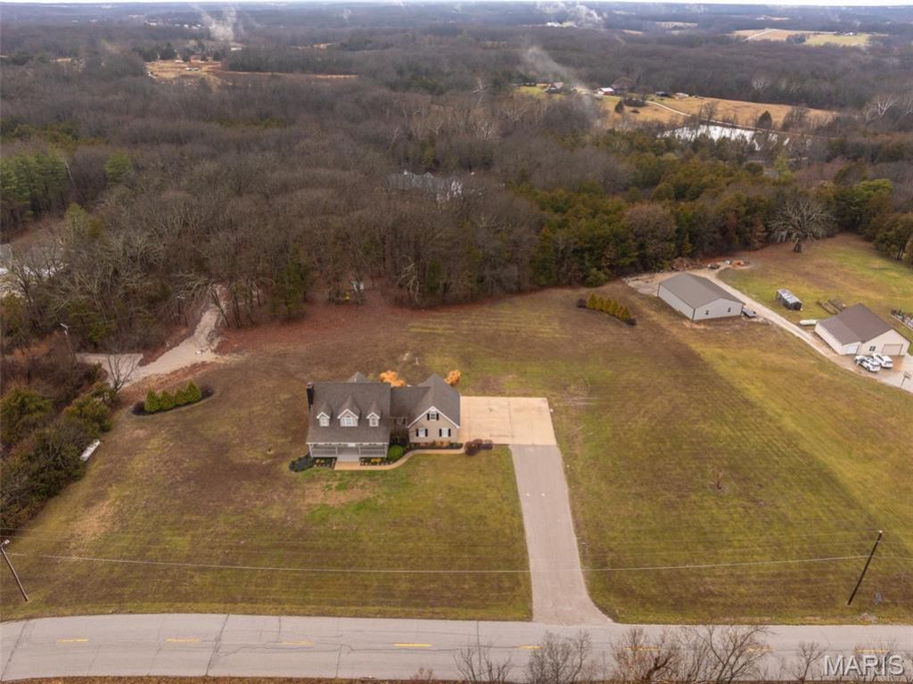 Great location on 3+/- private acres backing to woods just off blacktop-offering a peaceful setting with convenience to nearby amenities! This updated 3-bedroom, 4-bath 1.5 story home features numerous recent improvements including new flooring, fresh paint, remodeled bathrooms, updated lighting, trim, Newer HVAC/Furnace dual systems, reverse osmosis for your water and more. Kitchen features Lots of Natural light looking to the wooded area, New appliances, So many cabinets and tons of workspace! The main level includes a cozy woodburning fireplace, dining area with doors leading to a private deck, guest half bath, main floor laundry, and spacious primary suite. The primary bedroom offers generous space and a beautifully remodeled bath featuring a tiled shower, jetted tub, and ample room to relax. The upper level includes two spacious bedrooms, a loft area, and a full bath that has also been remodeled with a tiled shower. The walkout lower level provides additional living space with an office area, full bath, plumbing for a future sink or bar area (ideal for entertaining or in-law potential), and plenty of natural light. The insulated/finished garage includes a work area, storage in the attic, walkout access to the patio. Enjoy the hot tub, fire pit area and tree-lined backyard, with lots of room for an outbuilding! Enjoy the peaceful setting from both the inviting front porch and the private backyard surrounded by mature trees.